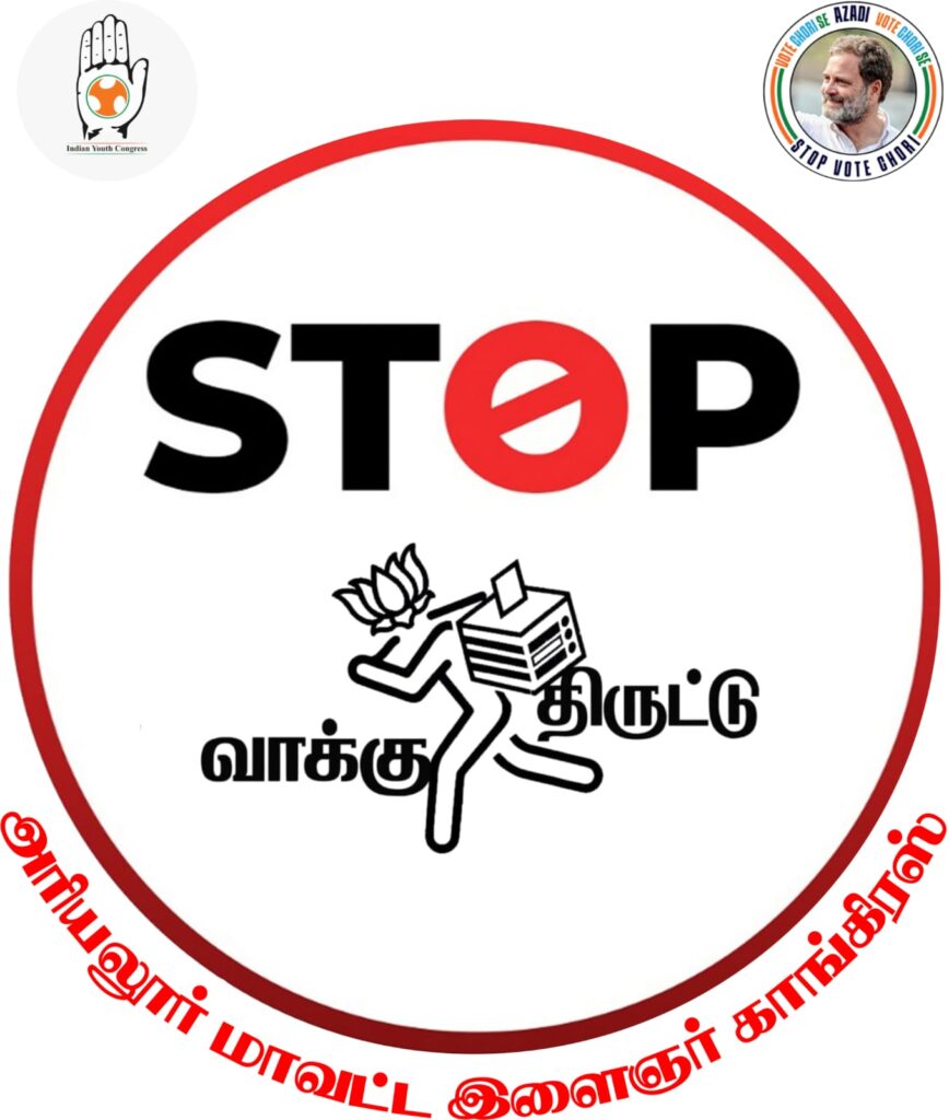 அரியலூர் மாவட்டம், திருமானூர் நகரில்,மாவட்ட இளைஞர் காங்கிரஸ் சார்பில், மாவட்ட இளைஞர் காங்கிரஸ் தலைவர் பாளை.எம்.ஆர்.பாலாஜி ஏற்பாட்டில் Stop வாக்கு திருட்டு விழிப்புணர் பிரச்சார நிகழ்ச்சி நேற்று நடைபெற்றது.