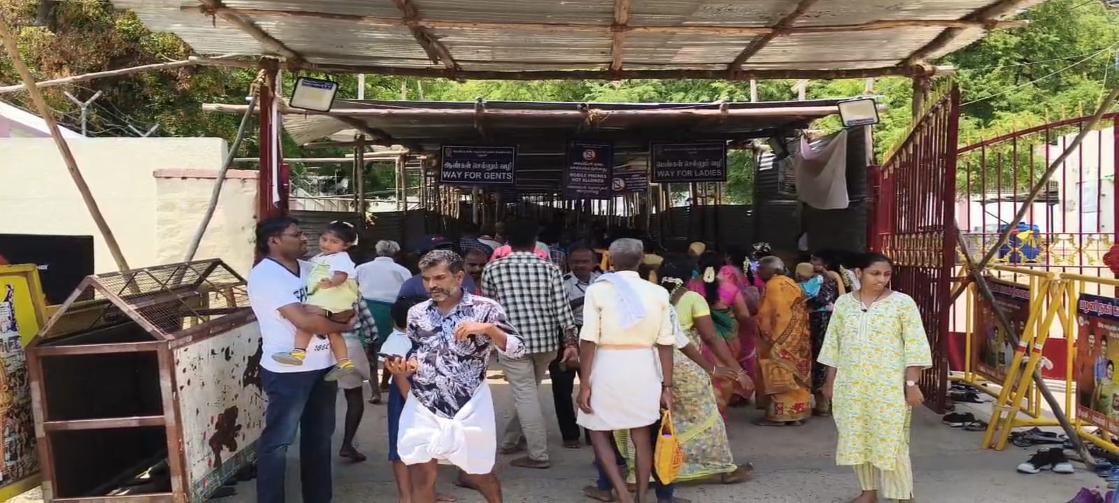 அறுபடை வீடுகளில் மூன்றாம் படை வீடான பழனி தண்டாயுதபாணி சுவாமி கோவிலில் ஞாயிறு விடுமுறை மற்றும் மே மாதம் விடுமுறையை முன்னிட்டு ஆயிரக்கணக்கான பக்தர்கள் கிரிவல பாதையில் காவடிகள் எடுத்தும், ஆடி பாடியும், படிப்பாதை ,யானை பாதை , மலைக்கோவிலுக்கு செல்லும் பக்தர்கள் ஆண் ,பெண் என பிரிக்கபட்டு செல்போன் கொண்டு செல்லாதவாறு சோதனை செய்யபட்டு அனுப்பட்டு வருகின்றனர்.