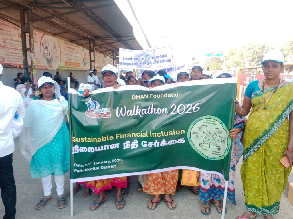 திரு என். சரவணன் அவர்கள் Walkathon 2026 பற்றிய ஒட்டுமொத்த அறிமுகத்தை வழங்கி, முந்தைய நடைப்பயண நிகழ்ச்சிகளின் அனுபவங்கள், DHAN Foundation-ன் செயல்பாடுகள் மற்றும் வங்கி கடன்கள், இணைப்புகள், ஏடிஎம் பயன்பாடு, சைபர் பாதுகாப்பு மற்றும் டிஜிட்டல் வங்கிச் சேவைகள் தொடர்பான பாதுகாப்பு நடவடிக்கைகள் குறித்து எடுத்துரைத்தார்.