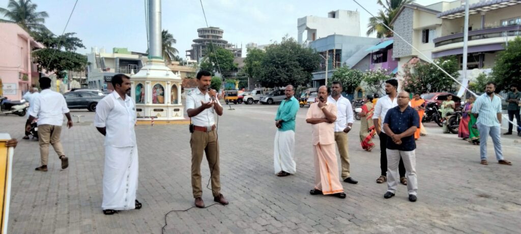 ஆலைய முற்றத்தில் சாலை பாதுகாப்பு காவல்துறை அதிகாரி தலைகவசம் கட்டாயம். குறிப்பாக 18_வயது கடந்து, ஓட்டுநர் உரிமம் பெற்று, இருசக்கர வாகனம் ஓட்டவேண்டும்.