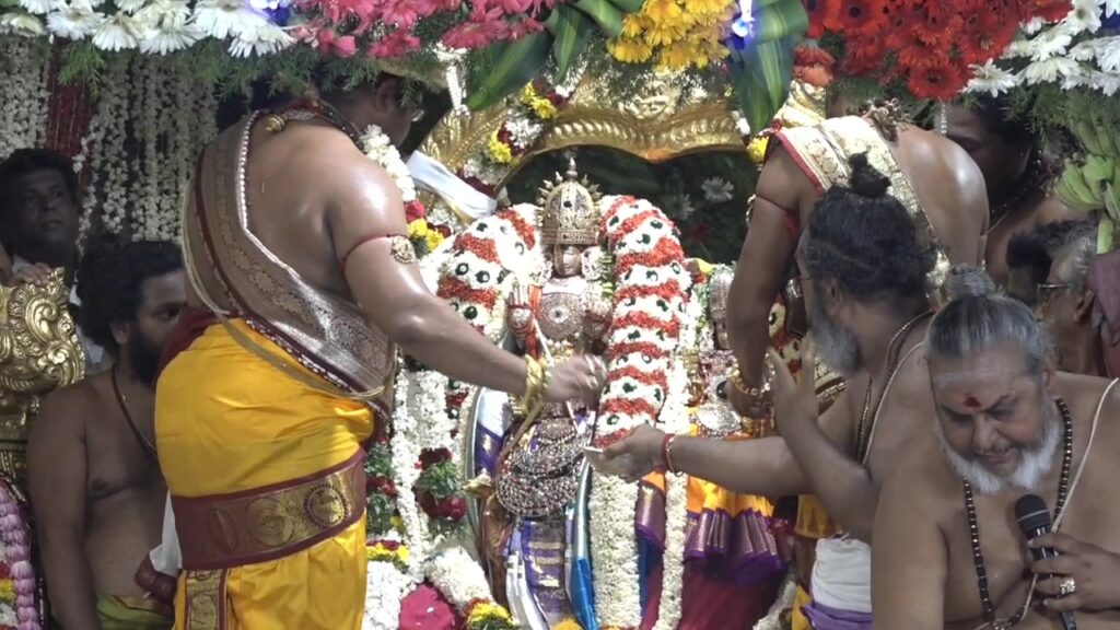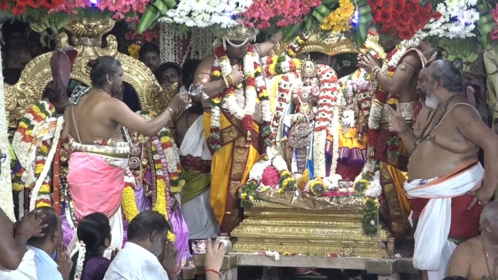 இதனை முன்னிட்டு அலங்கரிக்கப்பட்ட மணமேடையில் மதுரையிலிருந்து வந்திருந்த பிரியாவிடையுடன் சொக்கநாதரும், மீனாட்சி அம்மனும் எழுந்தருளினர்.