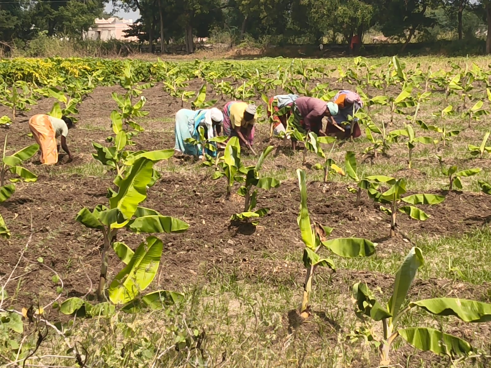 வாழை மரங்களுக்கு தேவை எப்போதும் இருப்பதால் இப்பகுதியில் வாழை மரங்கள் தொடர்ந்து சாகுபடி செய்து வருகிறோம். மேலும் தொடர்ந்து மழை பெய்யாததால் கிணறுகளில் தண்ணீர் வெகுவாக குறைந்து இருக்கிறது. சாரல் மழை மட்டும் பெய்வதால் வாழை மரங்கள் காய்ந்து வருகின்றன. தற்போது தோட்டத்தில் களைகள் அதிகளவு வளர்ந்ததால் அதனை அப்புறப்படுத்தும் பணியில் ஈடுபட்டுள்ளோம் என கூறினார்.