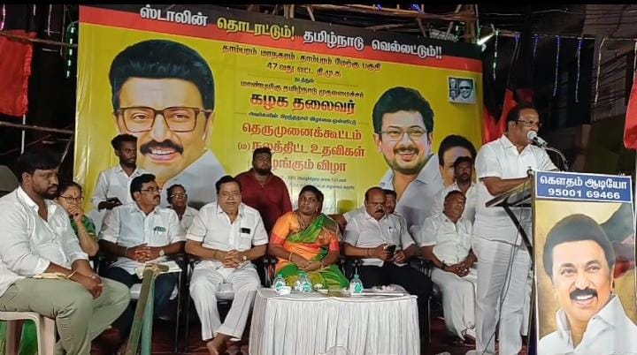 தாம்பரம் மாநகரம், தாம்பரம் மேற்கு பகுதி 47வது வட்டம் சார்பில், தமிழக முதலமைச்சர் மு.க.ஸ்டாலின் அவர்களின் பிறந்தநாளை முன்னிட்டு சிறப்பு பொதுக்கூட்டம் மற்றும் நலத்திட்ட உதவிகள் வழங்கும் நிகழ்ச்சி நடைபெற்றது.
