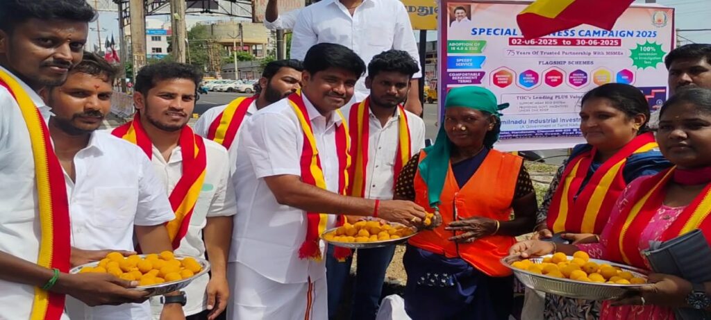 அதன் ஒரு பகுதியாக கரூர் மேற்கு மாவட்ட செயலாளர் மதியழகன் தலைமையில் நடைபெற்ற இந்நிகழ்ச்சியில் தவெகவினர் பலரும் கலந்து கொண்டு பேருந்து நிலையம் அருகே சாலையில் தலைகவசம் அணியாமல் சென்ற இரு சக்கர வாகன ஓட்டிகள் 51 பேருக்கு தலைகவசம் வழங்கினர். அதனை தொடர்ந்து பொதுமக்களுக்கு இனிப்புகளை வழங்கினர். அதனை தொடர்ந்து லைட்ஹவுஸ் கார்னர் பகுதியில் உள்ள ஆட்டோ ஸ்டேண்டில் ஆட்டோ ஓட்டுநர்களுக்கு சீருடைகள், பிரியாணி, தண்ணீர் பாட்டிலுடன் இனிப்புகளை வழங்கினர்.