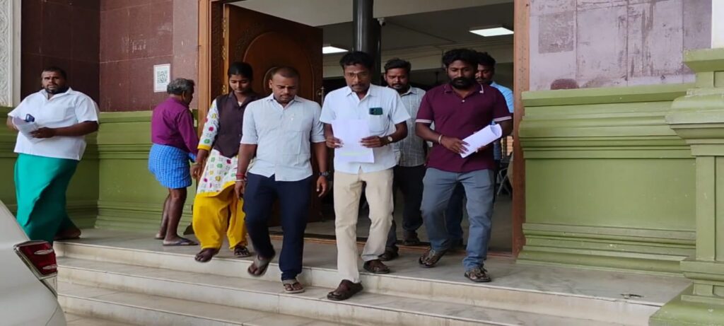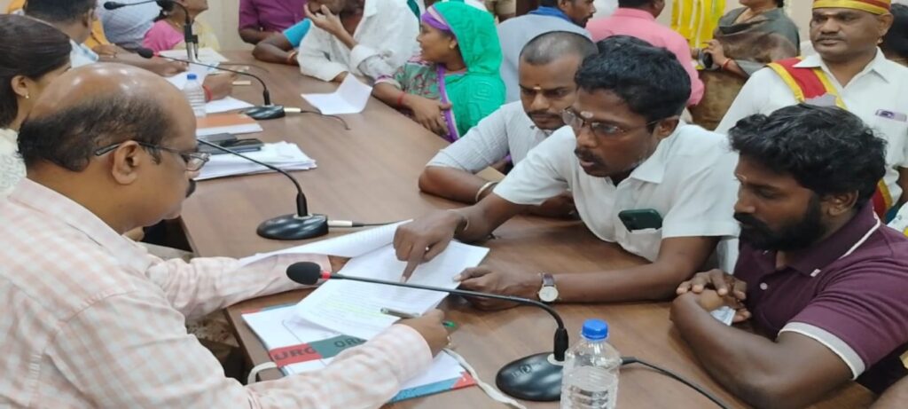 காலை 10 மணி முதல் மதியம் 2 மணிவரை நடைபெற்ற இந்த குறைதீர்க்கும் நாள் கூட்டத்தில், கரூர் மாவட்டத்தில், கரூர், மண்மங்கலம், புகளூர், அரவக்குறிச்சி, கிருஷ்ணராயபுரம், குளித்தலை, கடவூர் ஆகிய 7 வட்டங்களை சார்ந்த, பொதுமக்கள் தங்களின் குறைகளையும், அடிப்படை தேவைகளான குடிநீர் வசதி, சாலை, தார்சாலை, தெருவிளக்கு, இலவச வீட்டுமனைப்பட்டாக்கள் கேட்டு மனுக்கள் கொடுத்த நிலையில், கரூர் மாவட்ட அதிமுக இளைஞரணி மாவட்ட இணை செயலாளரும், அதிமுக வழக்கறிஞருமான கரிகாலன் ஒரு மனுவை மாவட்ட ஆட்சியர் தங்கவேலுவிடம் கொடுத்தார்.