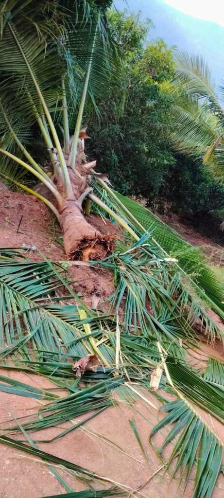 கடந்த ஐந்து நாட்களாக மூன்று யானை 2 குட்டிகளுடன் வந்து தொடர்ந்து தென்னை மரங்களை சேதப்படுத்தி வந்தது.