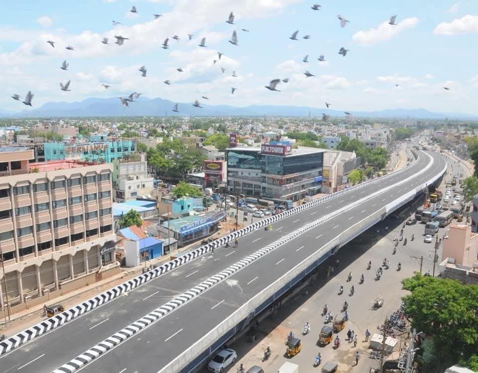 மேலமடை சந்திப்பில் ₹50 கோடி செலவில் கட்டப்பட்ட வேலுநாச்சியார் பாலம்.