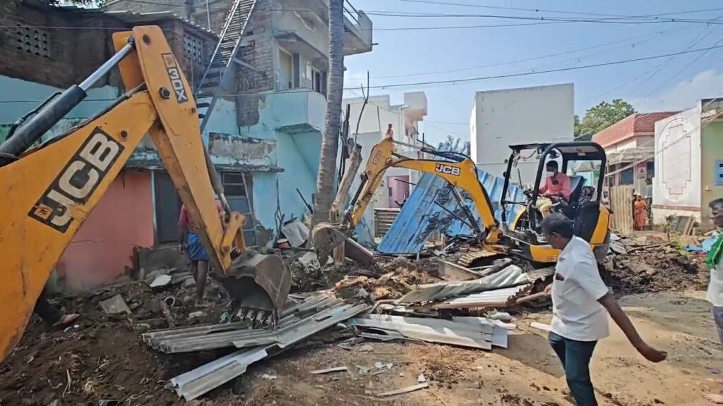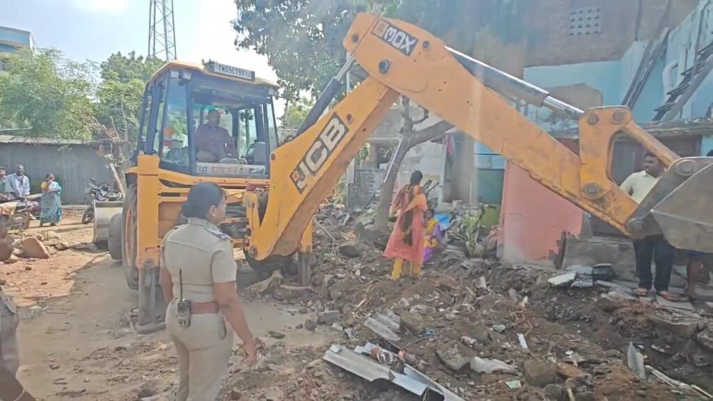 மிரட்டியுள்ளார். உடனே அந்த பகுதியே பரபரப்பானது. பின்னர் காவல்துறையினர் பெண்களை அப்புறப்படுத்திவிட்டு குறிப்பிட்ட இடங்களை அதிகாரிகள் ஜேசிபி இயந்திரம் கொண்டு அப்புறப்படுத்தினர். அங்கு கூடியிருந்த பெண்கள்