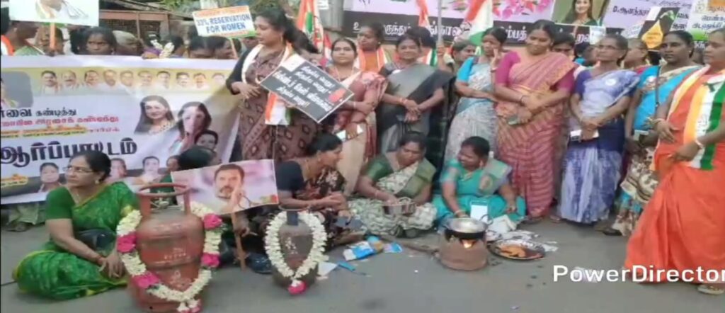 அதன்படி மகளிர் காங்கிரஸ் தலைவி நிஷா தலைமையில் கருவடி குப்பம் பாரதி நகரில் கண்டன ஆர்ப்பாட்டம் நடைபெற்றது.
