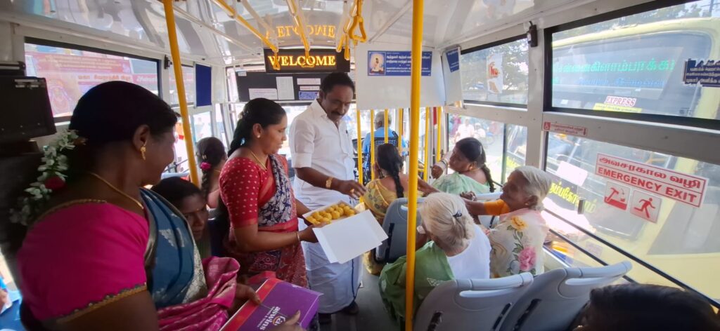 இந்நிகழ்ச்சியில் மாவட்ட பொறுப்பாளர் ஜெகதீசன் கலந்து கொண்டு பேருந்து நிலையத்தில் பேருந்தில் சென்ற பயணிகளுக்கு இனிப்புகள் வழங்கினார்.