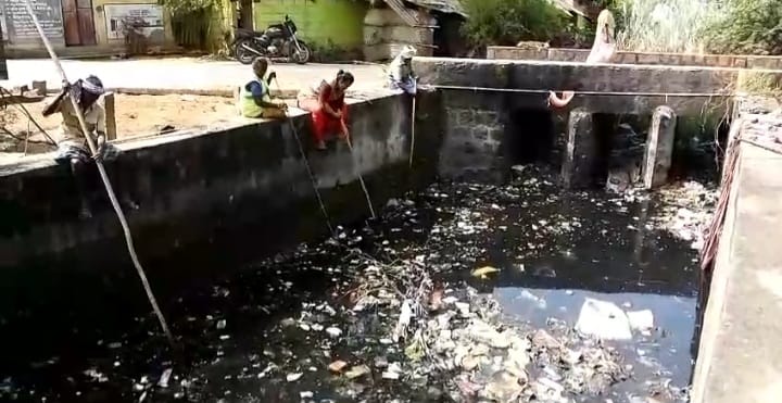 இயந்திரங்கள் மூலம் குப்பை கழிவுகளை அப்புறப்படுத்த வேண்டிய ஊராட்சி நிர்வாகம் ஊராட்சியில் பணிபுரியும் பணியாளர்களைக் கொண்டு கழிவுநீர் கால்வாயில் தேங்கியுள்ள குப்பை கழிவுகளை அகற்றி வருவது அந்த பகுதி மக்களிடையே அதிர்ச்சியை ஏற்படுத்தியுள்ளது