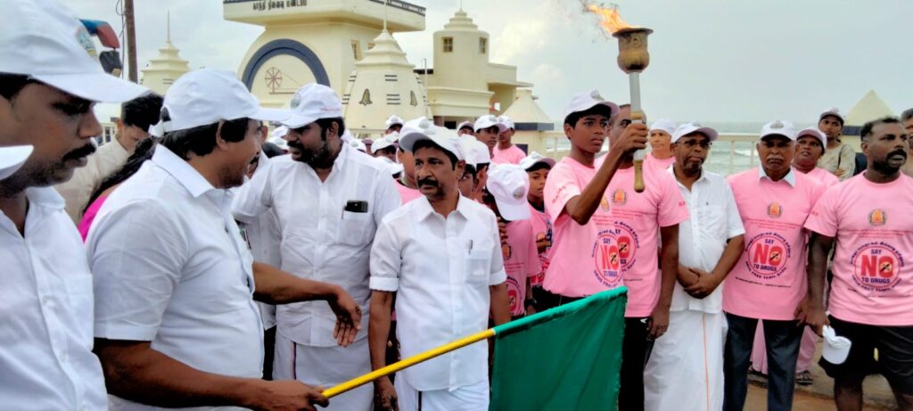 அருட்பணி நெல்சன் நடத்தி வரும் போதைக்கு எதிரான இயக்கம் சார்பில் மற்றும் குமரி மாவட்ட குழந்தைகள் நல பாதுகாப்பு அலகும் இணைந்து நடத்திய உலகப்போதை விழிப்புணர்வு நிகழ்ச்சி,குமரி மாவட்டத்தில் 31_ இடங்களில் இருந்து ஜோதி ஓட்டமாக நாகர்கோவில் அண்ணா விளையாட்டு திடலின் நிறைவடைகிறது.