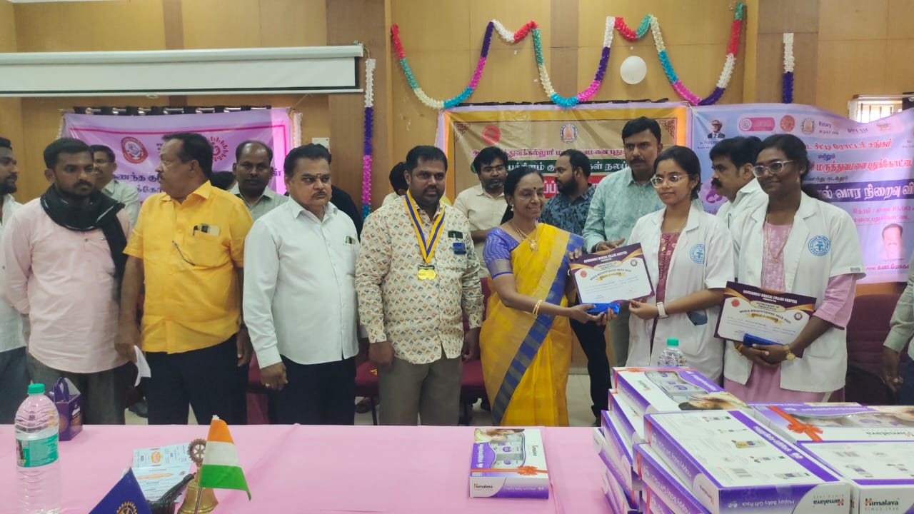 புதுக்கோட்டை சிட்டி ரோட்டரி சங்கம், அரசு மருத்துவக் கல்லூரி மருத்துவமனை புதுக்கோட்டை இணைந்து இராணியார் மகப்பேறு மருத்துவமனை வளாகத்தில் உலக தாய்ப்பால் வார நிறைவு விழா (தொடர் சேவையாக) சங்கத் தலைவர் AR.முகமது அப்துல்லா தலைமையில் நடைபெற்றது.