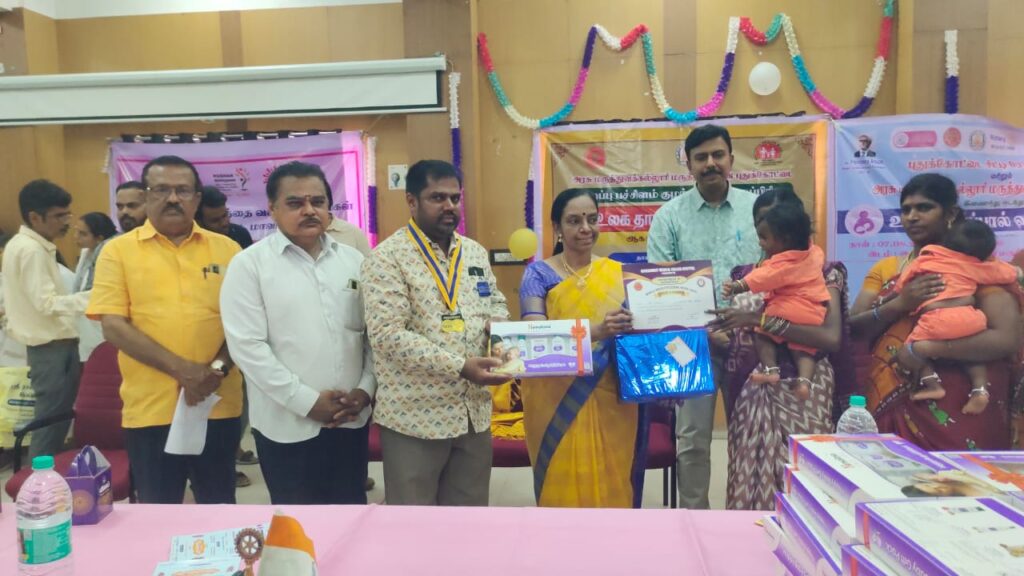 விழாவில் அரசு மருத்துவக் கல்லூரி முதல்வர் பேராசிரியர் டாக்டர் S.கலைவாணி சிறப்பு விருந்தினராக கலந்து கொண்டு பிறந்த 40 குழந்தைகளுக்கு (HIMALAYA BABY KIT) வழங்கி சிறப்புரையாற்றினார். முன்னதாக வருகை தந்த அனைவரையும் சங்க பொருளாளர் கண.மோகன் ராஜா வரவேற்றார். நிகழ்ச்சியில் டாக்டர் D.வெங்கடேசன் துணை ஆளுநர் B.அசோகன், பேராசிரியர் டாக்டர் ராஜ்மோகன், டாக்டர் ராமலதா ராணி, இருக்கை மருத்துவர் டாக்டர் இந்திராணி முன்னிலை வகித்தனர்.