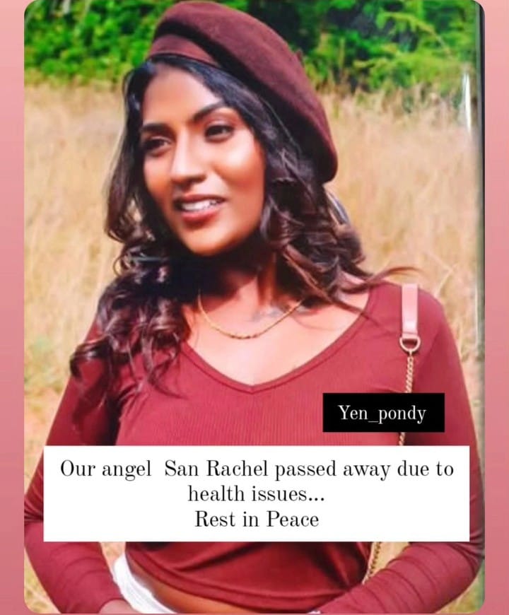 அது மட்டுமின்றி இவர் மாடலிங் துறைக்கு வரும் பெண்களுக்கு பயிற்சியும் நடத்தி வந்தார். இந்த நிலையில் ரேச்சல் கடந்த ஜூன் மாதம் 6 ஆம் தேதி தனது தந்தை வீட்டுக்கு வந்தவர் அங்கு அதிக அளவில் தூக்கம் மற்றும் இரத்த கொதிப்பு மாத்திரைகளை உட்கொண்டுள்ளார். இதனை கண்ட அவரது சகோதரர் கொளதம் மற்றும் தந்தை காந்தி ஆகியோர் ரேச்சலை புதுச்சேரி அரசு மருத்துவமனையில் அனுமதித்து சிகிச்சை அளித்து வந்தனர்.
