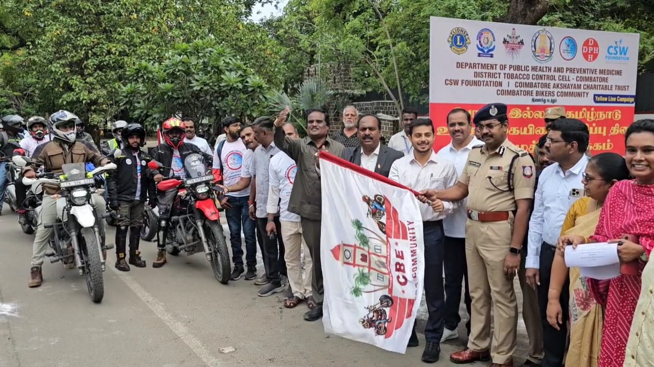 உலக புகையிலை ஒழிப்பு தினம் இன்று கடைபிடிக்கப்பட்டு வருகிறது. இதனை முன்னிட்டு இந்த வாரம் முழுவதும் பல்வேறு விழிப்புணர்வு நிகழ்ச்சிகள் நடத்தப்பட்டு வருகின்றன. இந்நிலையில் இன்று கோவை மாவட்ட சுகாதாரத்துறை மற்றும் புகையிலை கட்டுப்பாட்டு மையம் சார்பில் ரேஸ்கோர்ஸ் பகுதியில் இருசக்கர வாகன விழிப்புணர்வு பேரணி நடைபெற்றது. இதனை மாவட்ட ஆட்சியர் பவன்குமார் துவக்கி வைத்து அவரும் இருசக்கர வாகனத்தை இயக்கி விழிப்புணர்வு ஏற்படுத்தினார். இந்த பேரணியில் நூற்றுக்கும் மேற்பட்டவர்கள் கலந்து கொண்டு புகையிலை ஒழிப்பை வலியுறுத்தும் வண்ணம் பதாகைகளை ஏந்தி விழிப்புணர்வு ஏற்படுத்தினர். முன்னதாக புகையிலை ஒழிப்பு குறித்தான கையெழுத்து இயக்கத்தை மாவட்ட ஆட்சியர் துவக்கி வைத்தார். இந்த நிகழ்வில் கோவை மாநகர காவல் ஆணையாளர் சரவண சுந்தர் கலந்து கொண்டார்.