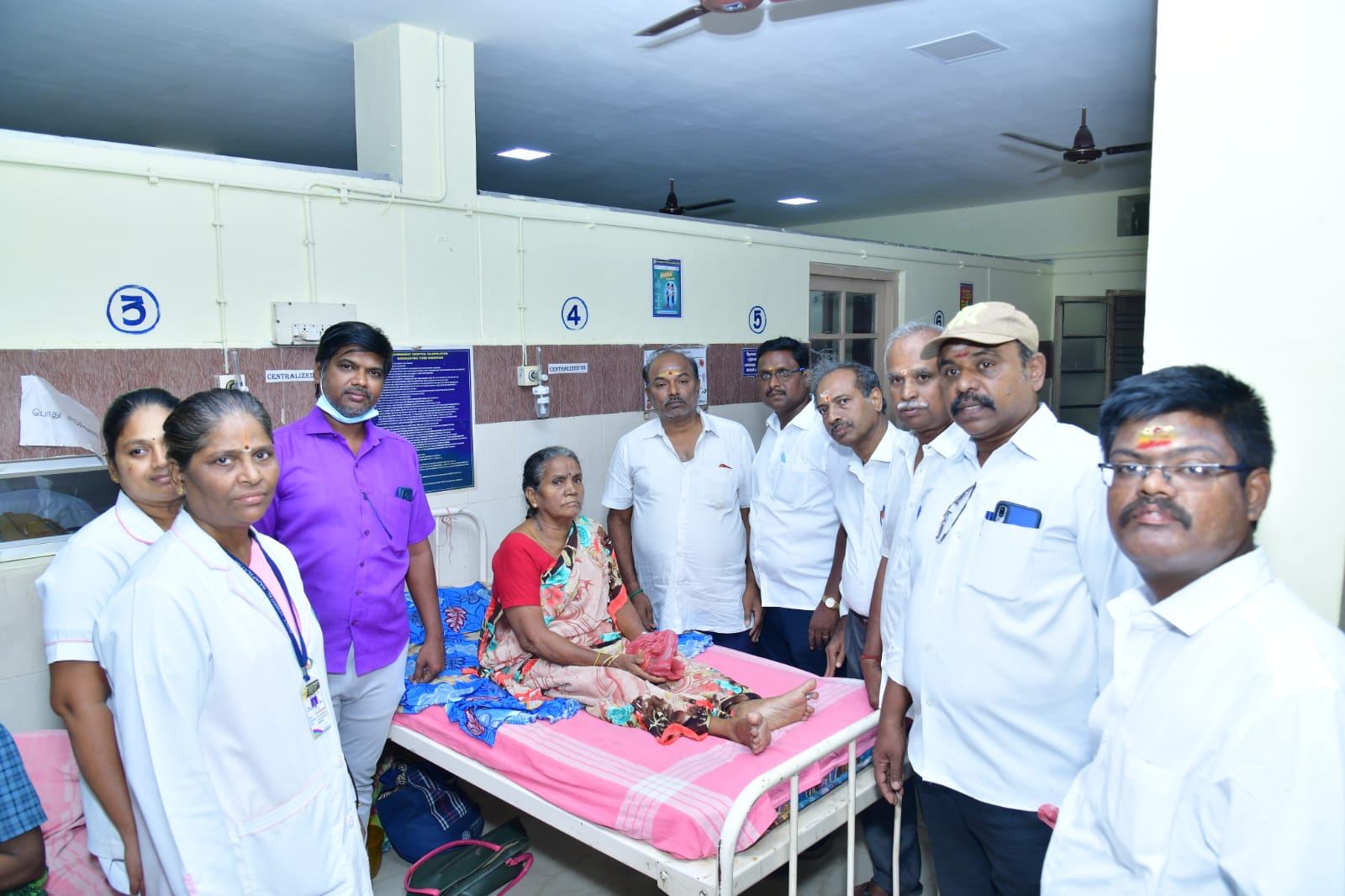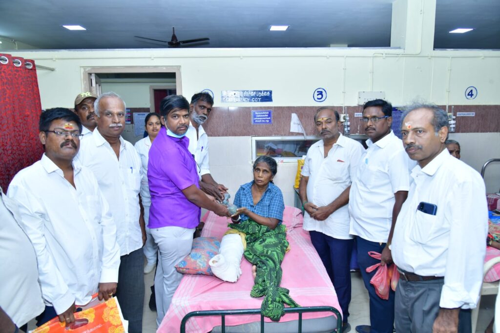 பி எஸ் சி ஆர் அரசு மருத்துவமனையில் மரக்கன்றுகளை நட்டு அங்கு உள்ள நோயாளிகளுக்கு பழங்கள் பிஸ்கட்கள் வழங்கினர்.