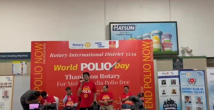 ரோட்டரி மாவட்டம் 3234, போலியோவை ஒழிக்கும் தன் உறுதியான முயற்சியை வெளிப்படுத்தும் வகையில், சென்னை மெட்ரோ நிலையங்களிலெல்லாம் விழிப்புணர்வு முகாமை நடத்தியது.