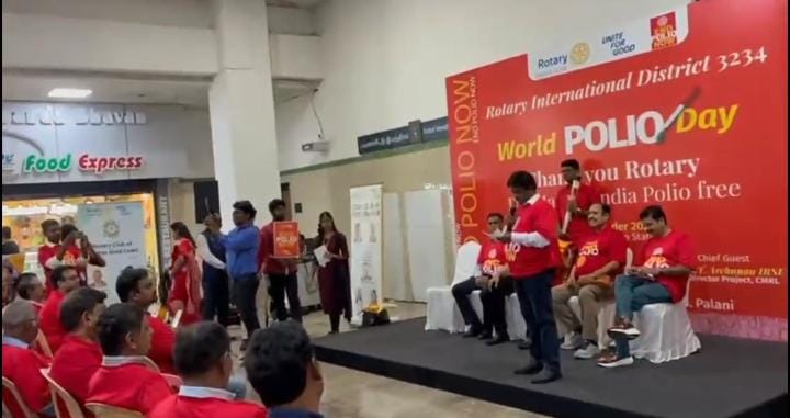 ரோட்டரியின் End Polio Now திட்டம், உலகளாவிய முயற்சிகளில் ஒன்றாகும். இதன் மூலம் இதுவரை 2.5 பில்லியன் குழந்தைகள் தடுப்பூசி பெற்றுள்ளனர். ரோட்டரி மாவட்டம் 3234 நடத்திய இந்த நகரளாவிய நிகழ்ச்சி, ஒற்றுமை மற்றும் சமூக விழிப்புணர்வு எவ்வாறு நிலையான மாற்றத்தை உருவாக்க முடியும் என்பதை வெளிப்படுத்துகிறது.