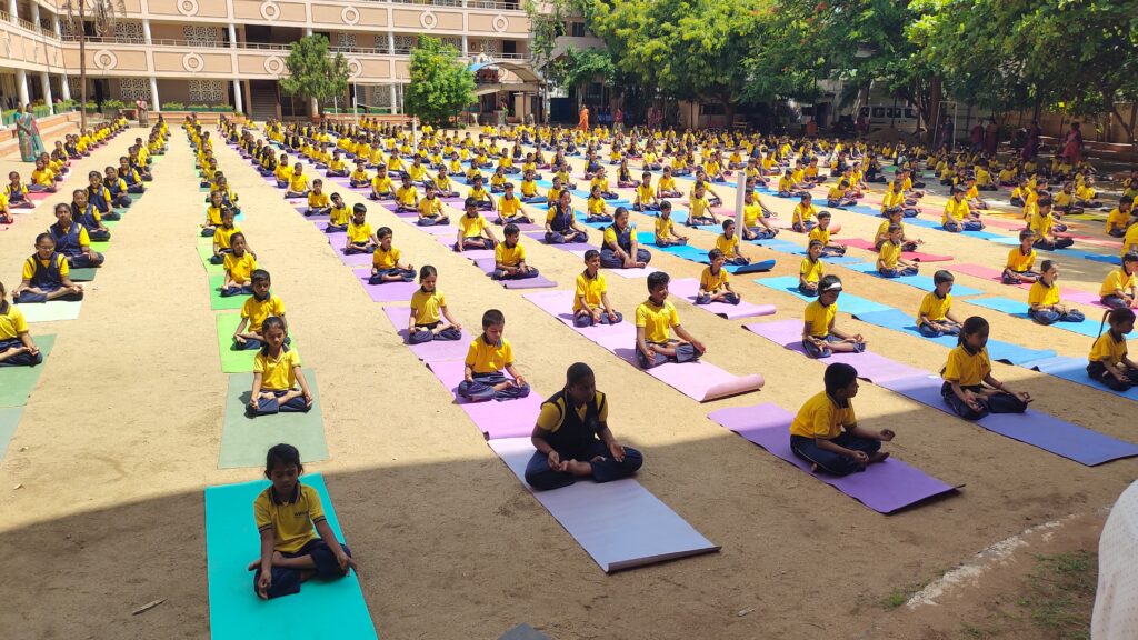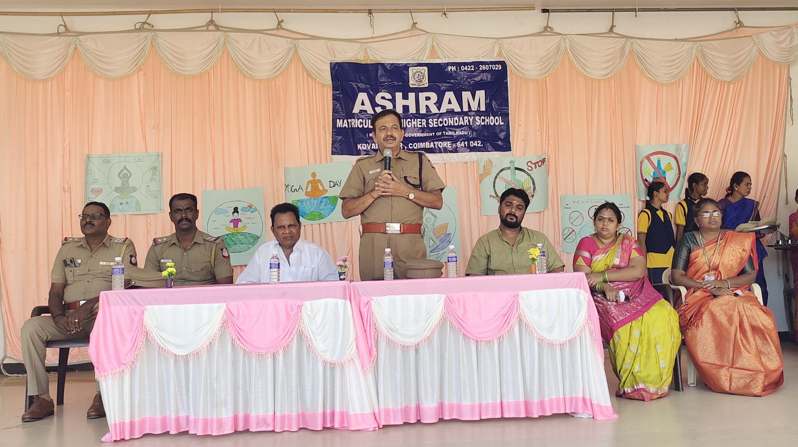 நிகழ்ச்சியில் ஆஸ்ரம் மெட்ரிக் பள்ளி செயலர் ரவிக்குமார்,நிர்வாகி உதயேந்திரன்,முதல்வர் சரண்யா,வித்யாஸ்ரம் பள்ளி நிர்வாக இயக்குனர் சவுந்தர்யா,யோகா பயிற்சியாளர் சதீஷ் உட்பட பலர் கலந்து கொண்டனர்.