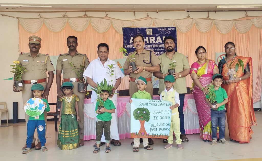 தொடர்ந்து நிகழ்ச்சியில் கலந்து கொண்ட அனைவருக்கும் வித்யாஸ்ரம் மழலை பள்ளி மாணவர்கள் பசுமை தினத்தை முன்னிட்டு மரக்கன்றுகளை வழங்கினர்.