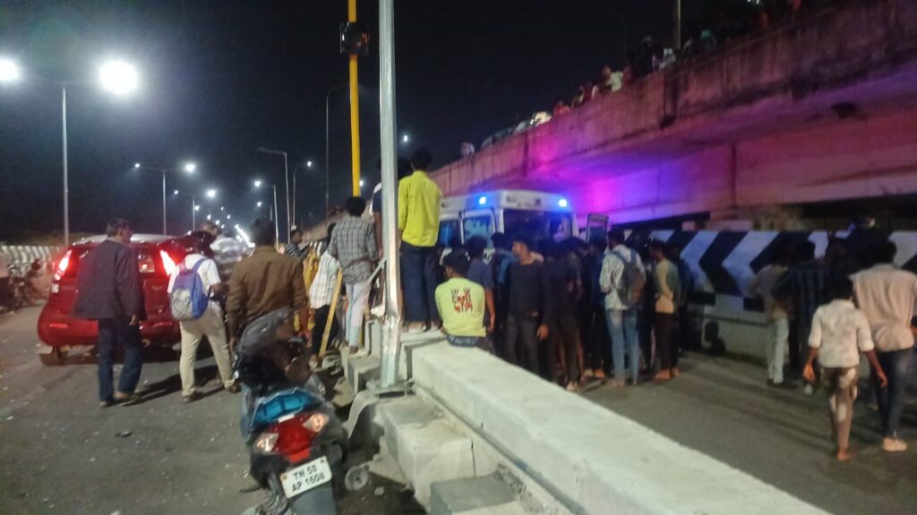 அப்பொழுது அதிவேகமாக பாலத்தில் வந்ததில் வேகத்தை கட்டுப்படுத்த முடியாமல் நோ என்ட்ரி பகுதியில் இருசக்கர வாகனத்துடன் பறந்து சென்று கீழே விழுந்தார் இதில் இவருக்கு பலத்த காயம் ஏற்பட்டது உடனடியாக அக்கம்பக்கத்தினர் 108 அவசர கால உறுதிக்கு தகவல் கொடுக்கவே சம்பவ இடத்துக்கு விரைந்த திருப்பரங்குன்றம் 108 அவசரகால ஊர்தி படுகாயம் அடைந்த அவரை திருப்பரங்குன்றம் அரசு மருத்துவமனைக்கு அழைத்து சென்றனர் இதில் அவருக்கு வலது காலில் எலும்பு முறிவு ஏற்பட்டுள்ளதாக தெரிவித்தனர் மேலும் பல இடங்களில் ரத்த காயம் ஏற்பட்டுள்ளது மேல் சிகிச்சைக்காக மதுரை அரசு ராஜாஜி மருத்துவமனைக்கு அனுப்பி வைத்தனர்